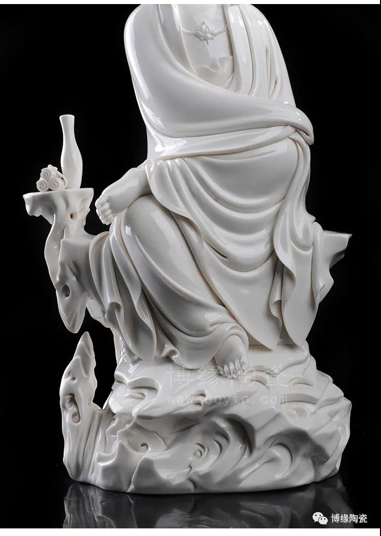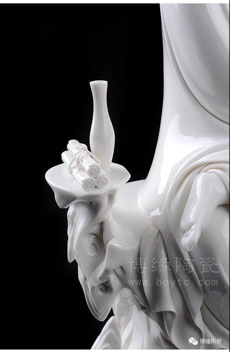 德化瓷器,以白瓷為最;白瓷之中,又以佛像為最。德化白瓷所塑佛像有性格鮮明、造型優(yōu)美、神態(tài)逼真、風(fēng)格洗練的特點(diǎn)。有一種單純的雕塑美和原材料的質(zhì)地美,最能體現(xiàn)佛教樸素、平和的思想。
