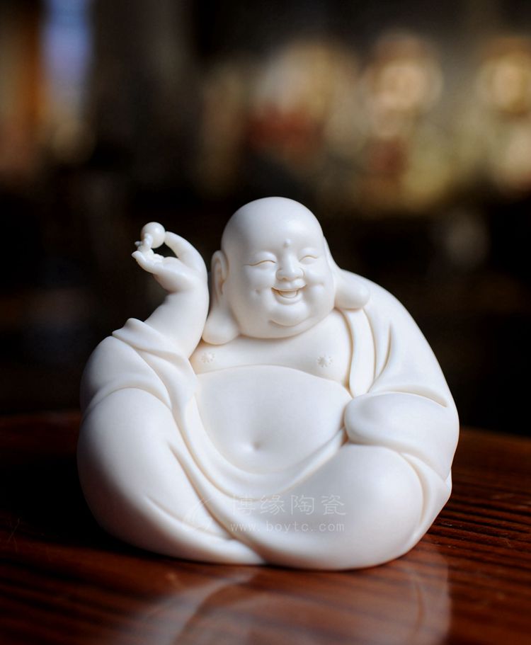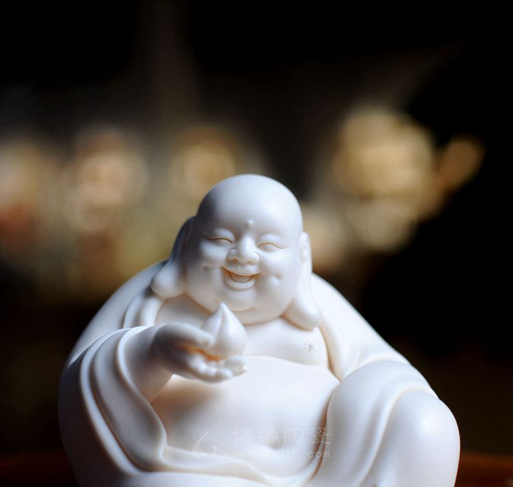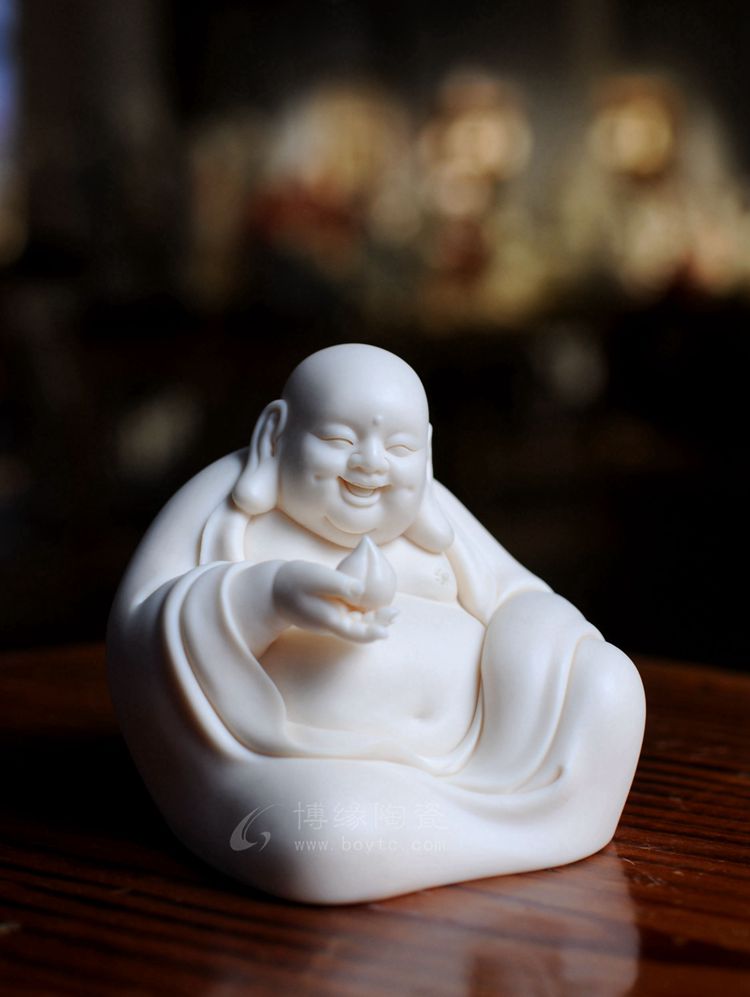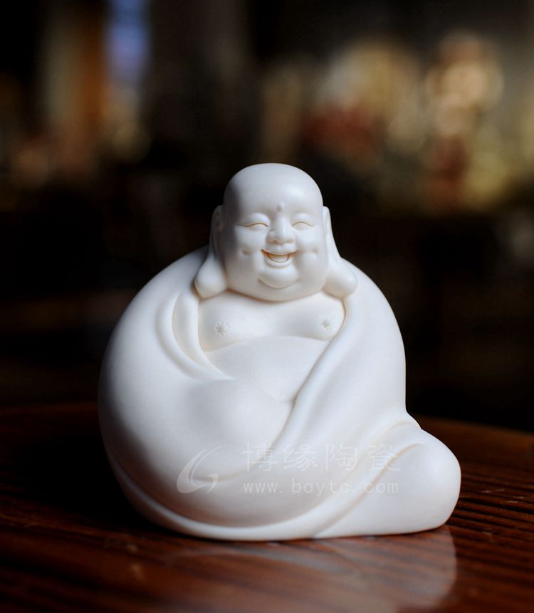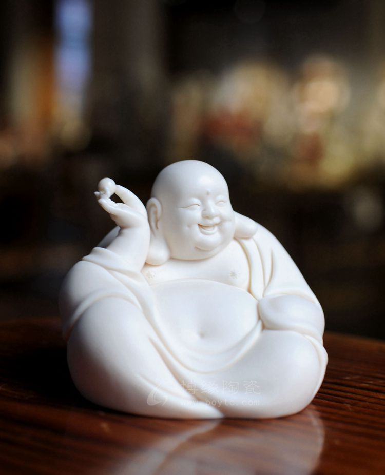 德化瓷之中,又以佛像為盛名。德化瓷所塑彌勒佛像有性格鮮明、造型優(yōu)美、神態(tài)逼真、衣紋流暢、風(fēng)格洗練等特點(diǎn)。