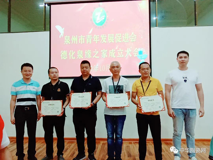 會(huì)上泉州市青年發(fā)展促進(jìn)會(huì)領(lǐng)導(dǎo)為德化理事單位頒發(fā)證書(shū):