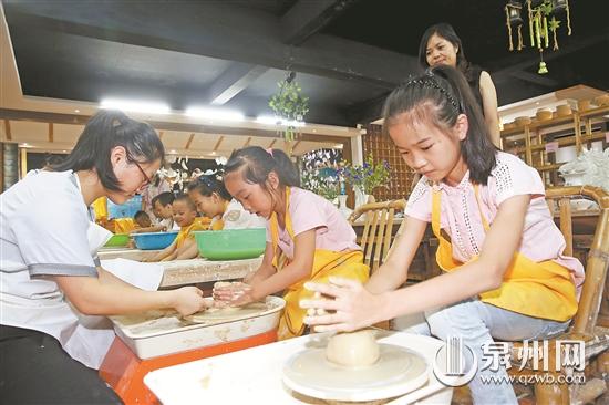 青少年在順美陶瓷體驗(yàn)陶藝