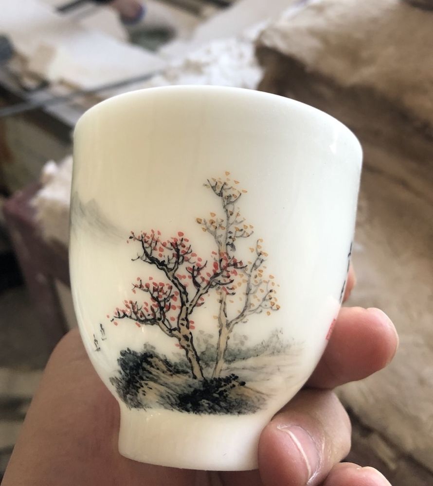 老總的祝福下,送了一個喝水杯子,那就來說說感受吧:山水畫是工匠大師老羅的精湛手法,通過色彩調(diào)配,以及顏色還原真實(shí)的比例手繪上去的,這一個杯子前后手繪的周期要花3天時間,為了多方面的細(xì)節(jié),要不斷的深入化修正和改進(jìn);在陽光照射下晶瑩易透,娓娓動人,似乎山水畫的花草樹木就盤活在眼前,為人之震驚,對于小編來說真是愛不釋手。