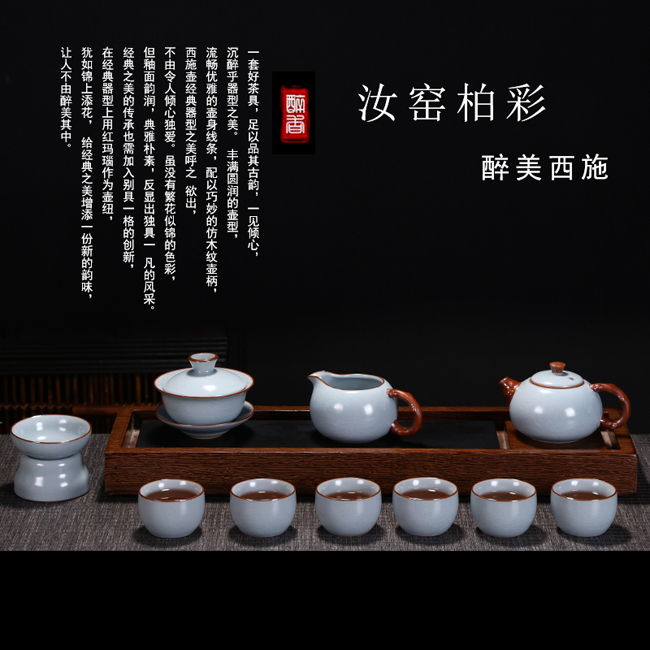 一套好茶具,足以品其古韻,一見傾心,沉醉乎器型之美。 豐滿圓潤的壺型,流暢優(yōu)雅的壺身線條,配以巧妙的仿木紋壺柄,西施壺經(jīng)典器型之美呼之 欲出,不由令人傾心獨(dú)愛。雖沒有繁花似錦的色彩,但釉面韻潤,典雅樸素,反顯出獨(dú)具一 凡的風(fēng)采。 經(jīng)典之美的傳承也需加入別具一格的創(chuàng)新,在經(jīng)典器型上用紅瑪瑙作為壺紐,猶如錦上添花, 給經(jīng)典之美增添一份新的韻味,讓人不由醉美其中。