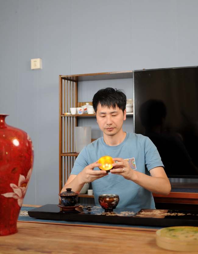 王存旭深愛(ài)當(dāng)?shù)靥厣a(chǎn)業(yè)德化瓷器。積極創(chuàng)新尋找漆畫(huà)技法表現(xiàn)更多的“可能性”致力研究德化白瓷與漆器結(jié)合。創(chuàng)作出漆藝功夫茶具,茶道配件、單杯茶器等一系列產(chǎn)品。漆藝與茶器的碰撞,將現(xiàn)代的時(shí)尚元素、色彩、造型與傳統(tǒng)漆藝技法相“混搭”實(shí)用與審美并重,使漆藝真正走出搏物館,走入大眾生活。體現(xiàn)豐富文化內(nèi)涵和更高藝術(shù)價(jià)值。