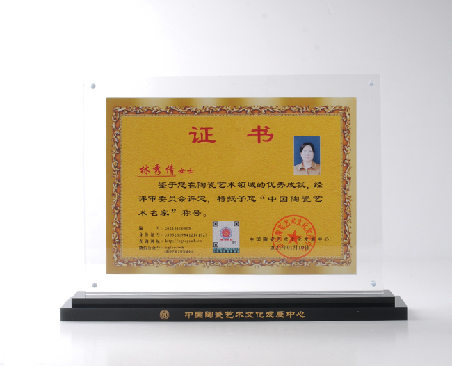林秀情,1984年出生于世界陶瓷之都德化,中國陶瓷藝術(shù)名家、中國陶瓷藝術(shù)非遺傳承人、高級工藝美術(shù)大師、優(yōu)秀創(chuàng)作坊工作室、中國陶瓷藝術(shù)文化發(fā)展中心會員、“興永達(dá)”藝術(shù)總監(jiān)。