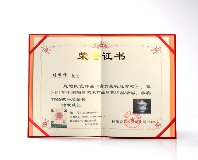 陶瓷藝術(shù)作品《富貴蓋碗迎客松》榮獲金獎