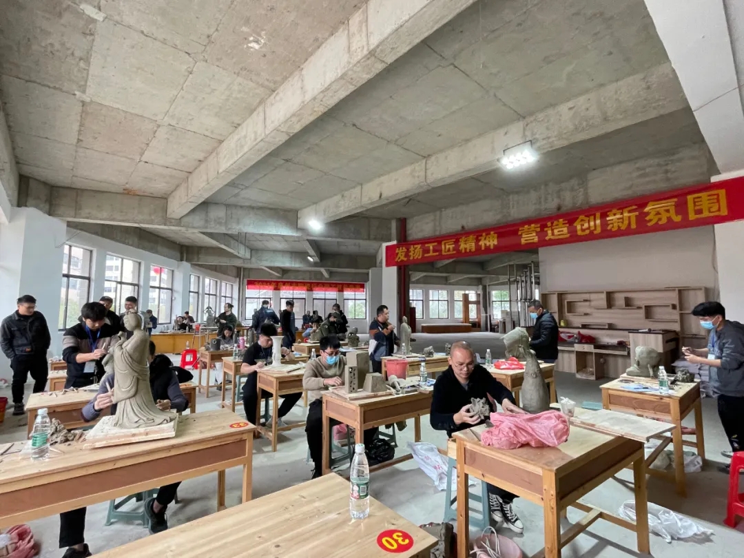 本次競賽由泉州市總工會、市人社局主辦,德化縣總工會、縣人社局、泉州工藝美院承辦。競賽項目為雕塑創(chuàng)作,分理論考試和現(xiàn)場創(chuàng)作兩部分,現(xiàn)場創(chuàng)作要求選手在規(guī)定時間內(nèi),獨立完成陶瓷雕塑設(shè)計與制作。競賽現(xiàn)場匯聚了62名陶瓷匠人參加競賽,選手們個個聚精會神,各顯所長,精心塑造雕琢出一個個栩栩如生的形象,充分展現(xiàn)陶瓷匠人的技藝和風(fēng)采。