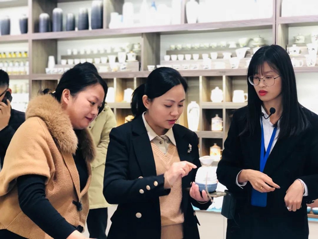 考察團(tuán)一行參觀了德化國際陶瓷藝術(shù)城內(nèi)國家級、省級大師工坊和各大品牌陶瓷館等,每到一處都認(rèn)真聆聽講解,駐足欣賞,仔細(xì)品鑒、參觀,與相關(guān)負(fù)責(zé)人交流學(xué)習(xí),并對德化作為世界陶瓷之都所展現(xiàn)出來的高超陶瓷技藝及其深厚的文化內(nèi)涵贊嘆不已。