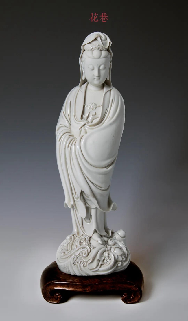 德化白主要以明和清兩個(gè)時(shí)代為代表。明代鼎盛期的德化白瓷胎質(zhì)細(xì)膩堅(jiān)致,胎色潔白,有著天然象牙般的妙趣,制品釉色以乳白色為大宗,光照之下,胎釉透亮,隱約可見(jiàn)粉紅或乳白色,有“豬油白”“象牙白”“鵝絨白”“蔥根白”“女兒紅”的美稱。在清代,泉州德化白瓷成為了中國(guó)白瓷的杰出代表,被譽(yù)為 “中國(guó)白”而遠(yuǎn)銷(xiāo)世界。