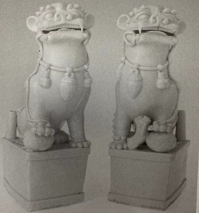 (An pair of Buddhist Guardian Lions (Dogs of Fo), late 17 -early 18 century,34x8.9x12.5cm佛教對(duì)獅(護(hù)佛) 約17世紀(jì)后期至18世紀(jì)早期,34×8.9×12.5厘米)