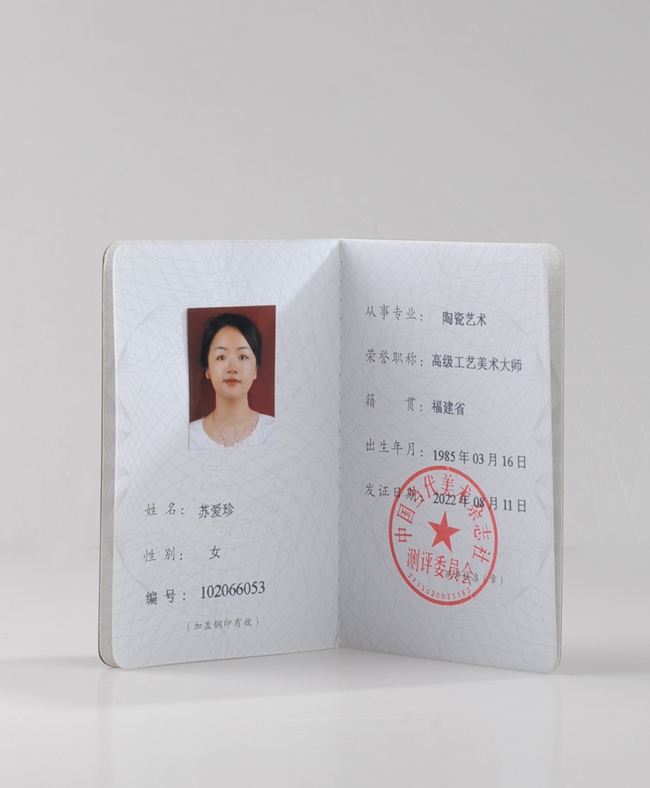 蘇愛(ài)珍從小深受千年瓷都德化陶瓷文化熏陶,耳濡目染,便對(duì)德化陶瓷產(chǎn)生濃厚興趣,也喜歡上了陶瓷及其燒制技藝。畢業(yè)于泉州市工藝美術(shù)學(xué)院后便開(kāi)始從事陶瓷創(chuàng)作,2005年起開(kāi)始專(zhuān)注茶器設(shè)計(jì)生產(chǎn),2010年成立福建德化金弘泰陶瓷有限公司并任兼藝術(shù)總監(jiān),2015年創(chuàng)辦“泓菡”、2016年創(chuàng)立“瓷家三器”、2020成立月陶堂品牌,經(jīng)過(guò)10多年創(chuàng)作與積累,蘇愛(ài)珍熟練掌握泥料選配、器型設(shè)計(jì)、手拉坯、手繪制作、燒制技藝等。其積極探索與大膽創(chuàng)新,將青瓷釉與德化白瓷結(jié)合,并將明清古典風(fēng)與當(dāng)代審美相結(jié)合,產(chǎn)生不一樣的視覺(jué)效果。經(jīng)過(guò)多年創(chuàng)作,其創(chuàng)作出一系列中國(guó)白手繪茶器,青瓷雕刻品茗杯,汝官窯等器皿,作品器形豐富,款式新穎,深受廣大客戶(hù)喜愛(ài),多件作品被評(píng)為金獎(jiǎng),2019年作品《夏荷》榮獲北京中國(guó)陶瓷藝術(shù)名家作品展金獎(jiǎng)等,2022年作品《仿古泥手繪一堂和氣》榮獲中國(guó)武漢陶瓷藝術(shù)名家作品展金獎(jiǎng),2022年作品《玉泥繽紛櫻花粉》榮獲北京中國(guó)陶瓷藝術(shù)名家作品展金獎(jiǎng)等。