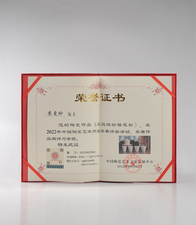 作品《玉泥繽紛櫻花粉》榮獲2022年中國(guó)陶瓷藝術(shù)作品評(píng)比金獎(jiǎng)