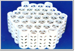 瓷質(zhì)全瓷填料是本公司在有關(guān)填料專家指導(dǎo)下,參照國內(nèi)和國外現(xiàn)有不同材質(zhì)、不同形狀、不同規(guī)格填料,研制出的一種能適應(yīng)大小型冷卻塔內(nèi)的一種新型材料填料,它克服了傳統(tǒng)水泥格板粗笨,淋水效果差,阻力大等缺陷;塑料填料遇冷、遇熱易老化,易塌落,檢修麻煩等不足之處;以及陶瓷填料易破碎等。完全滿足冷卻塔所需淋水密度、熱力、阻力要求。現(xiàn)已獲得國家專利;光華環(huán)外觀設(shè)計(jì)專利ZL01 3 40296.X,光華環(huán)實(shí)用新型專利ZL01 2 57154.7,光華葵花環(huán)專利申請?zhí)枺?00520051515.0,光華條紋環(huán)專利申請?zhí)?00520051516.5。 1、使用壽命長達(dá)五十年以上。 2、經(jīng)過千度以上高溫?zé)Y(jié),不變形,不老化,不堵塞,抗壓強(qiáng)度高,熱穩(wěn)定性好。 3、冷卻效果穩(wěn)定,免維護(hù)。 4、耐酸,耐堿,耐腐蝕,對冷卻水質(zhì)無要求 5、抗凍融性能好。 |