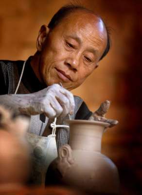 如今,在湖南長(zhǎng)沙市銅官鎮(zhèn)上,只有胡武強(qiáng)完全保持古銅官窰的傳統(tǒng)制作方式。窰品全部采用手工制作,燒制全部采用土窰燒制。盡管又出現(xiàn)了新的困境,如家人難以再忍受貧窮,但胡武強(qiáng)很堅(jiān)定地認(rèn)為自己會(huì)做古銅官窰的最后守望者。