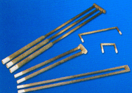 硅碳棒為非金屬電熱元件是用高純度綠色六方碳化硅為主要原料,按一定料比加工制坯,經(jīng)2200℃高溫硅化再結(jié)晶燒結(jié)而制成的棒狀、管狀非金屬高溫電熱元件。氧化性氣氛中正常使用溫度可達1450℃,連續(xù)使用可達2000小時。 硅碳棒用途:由于硅碳棒使用溫度高,具有耐高溫、抗氧化,耐腐蝕、升溫快、壽命長、高溫變形小、安裝維修方便等特點。有良好的化學穩(wěn)定性。 若與自動化供電系統(tǒng)配套,既可得到精確的恒定溫度,又可根據(jù)生產(chǎn)工藝的實際需要按曲線自動調(diào)溫。現(xiàn)已廣泛應用于國防、機械、冶金、輕化、陶瓷、半導體、分析化驗、科學研究等領(lǐng)域,成為各種電爐電窯的電加熱元件.隧道窯、輥道窯、玻璃窯爐、真空爐、馬弗爐、冶煉爐以及各類加熱設備,使用硅碳棒加熱既方便,又安全可靠。被廣泛用于電子、磁性材料、粉末冶金、陶瓷、玻璃、冶金和機械等工業(yè)的多種高溫電爐,電窯。及其電加熱設備上. |