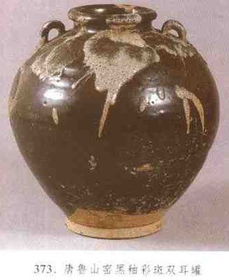 唐至元代瓷窯。窯址在河南魯山段店。唐代南卓《羯鼓錄》有“不是青州石墨,即是魯山花瓷”的記載,說明唐代魯山燒造的花瓷很有名。從采集的標(biāo)本來看,“花瓷”是黑釉或褐釉上帶白、月白等淺色斑紋裝飾的器物,器形有拍鼓、瓶、壺、罐、碗、盤等。宋、金時(shí)窯場擴(kuò)大,燒瓷品種豐富,裝飾方法多種多樣。白釉器物有爐、罐、碗、缽等。白釉上繪褐彩的點(diǎn)、圈點(diǎn)、花卉等幾類紋飾。其中點(diǎn)紋排列方式有橫向形、花朵形和三角形等。另有白釉劃花、紋飾有荷葉、花草紋,器物為碗、枕,有以多組直線、曲線相間豎向排列組成的紋飾,有珍珠地劃花、還有粗線紋的缽,用黑釉、醬釉裝飾口沿的白釉碗。黑釉器物有線紋裝飾,有滿線與兩線一組兩種。有六角紋盤,盤中心素胎上有點(diǎn)彩花朵裝飾。還有醬彩裝飾的碗。醬釉有碗、罐等器物,青釉印花的幾種紋飾與臨汝等窯相近。此外,紅綠彩碗、三彩凸雕蓮瓣?duì)t、綠釉獅形枕、劃花枕、褐黃釉劃花枕都具有魯山窯特色。(見圖373)