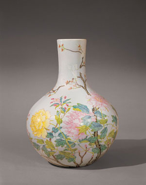 (粉彩牡丹玉蘭蜂蝶圖天球瓶 )