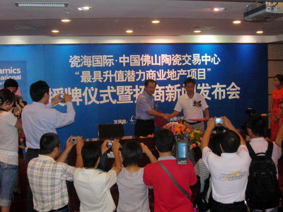 預(yù)示佛山建陶交易巨擎正式啟動(dòng)的“瓷海國(guó)際·中國(guó)佛山陶瓷交易中心‘最具升值潛力的商業(yè)地產(chǎn)項(xiàng)目’授牌儀式暨招商簽約新聞發(fā)布會(huì)”,昨日下午假華夏新中源大酒店會(huì)議中心舉行。發(fā)布會(huì)上,瓷海國(guó)際負(fù)責(zé)人接受了“博鰲·21世紀(jì)論壇”主辦單位授予的“最具潛力商業(yè)地產(chǎn)項(xiàng)目獎(jiǎng)”并宣布:瓷海國(guó)際將在8月3日正式接受認(rèn)租登記!