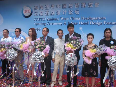 上午11點(diǎn),高陶潔具中國(guó)總部新展廳在一片歡樂(lè)祥和的氣氛中盛大開(kāi)幕,主辦方高陶建材特意邀請(qǐng)了香港著名影星苗僑偉、溫碧霞出席剪彩儀式,剪彩儀式還邀請(qǐng)到了一批建筑行業(yè)的專(zhuān)家和學(xué)者,他們是現(xiàn)代裝飾雜志社副社長(zhǎng)王平先生、中國(guó)建筑學(xué)會(huì)室內(nèi)設(shè)計(jì)分會(huì)會(huì)長(zhǎng)勞智權(quán)、CIID深圳專(zhuān)業(yè)委員會(huì)劉力平秘書(shū)長(zhǎng)、高陶潔具中國(guó)總代理高陶建材董事長(zhǎng)彭洪萼先生、高陶潔具中國(guó)總代理副總經(jīng)理周振宇先生、CIID東莞專(zhuān)業(yè)委員會(huì)會(huì)長(zhǎng)兼新展廳設(shè)計(jì)師麥德斌先生、高陶中國(guó)各地的代理商以及來(lái)自廣州的知名設(shè)計(jì)師丁武、李智、尹鐵等,開(kāi)幕結(jié)束后,大家紛紛在新展廳參觀留念。
