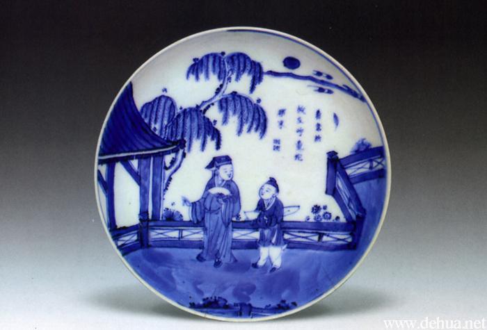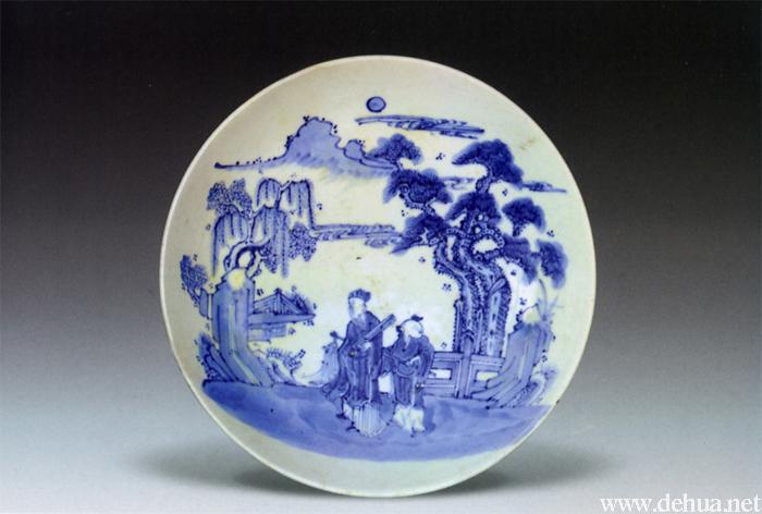 ▲清初 青花攜琴訪友紋盤 口徑27cm