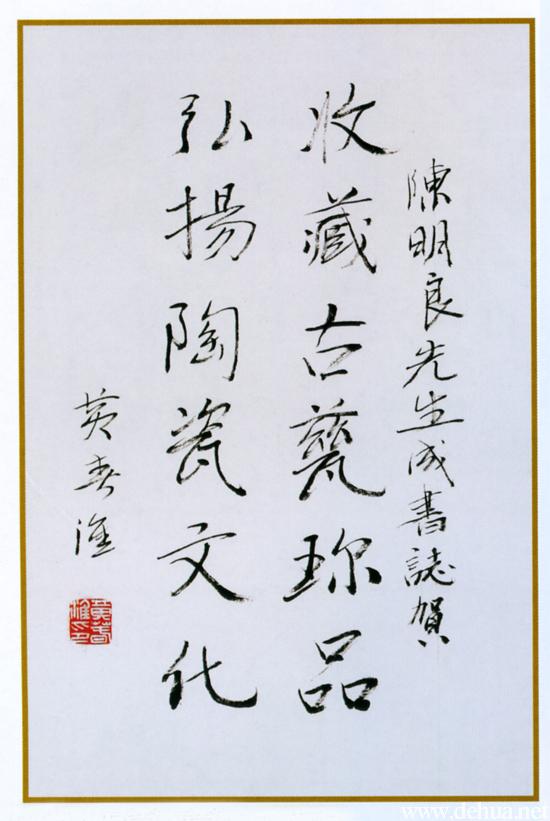 ▲中國(guó)古陶瓷學(xué)會(huì)名譽(yù)會(huì)長(zhǎng)葉文程題詞