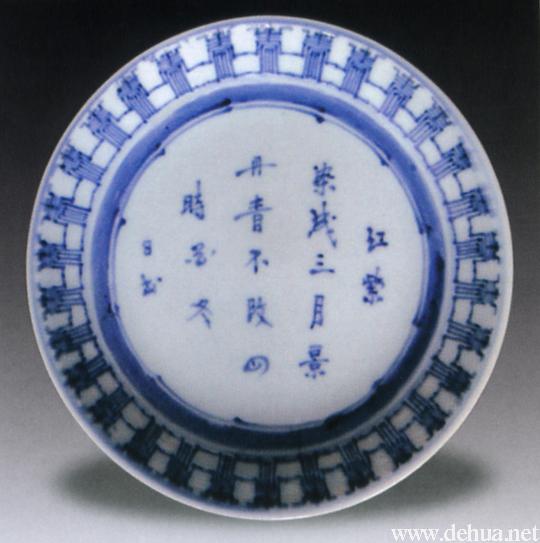 ▲清中期 青花詩詞紋盤 口徑16厘米
