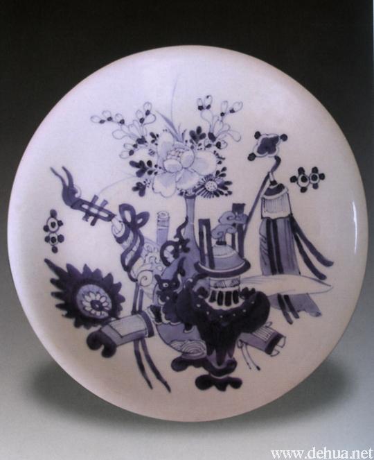 ▲清早期 青花博古紋盤(謝國安藏) 口徑25.5厘米