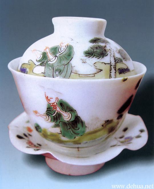 ▲清中期 五彩山水漁樂紋茶碗 高9厘米,口徑6厘米