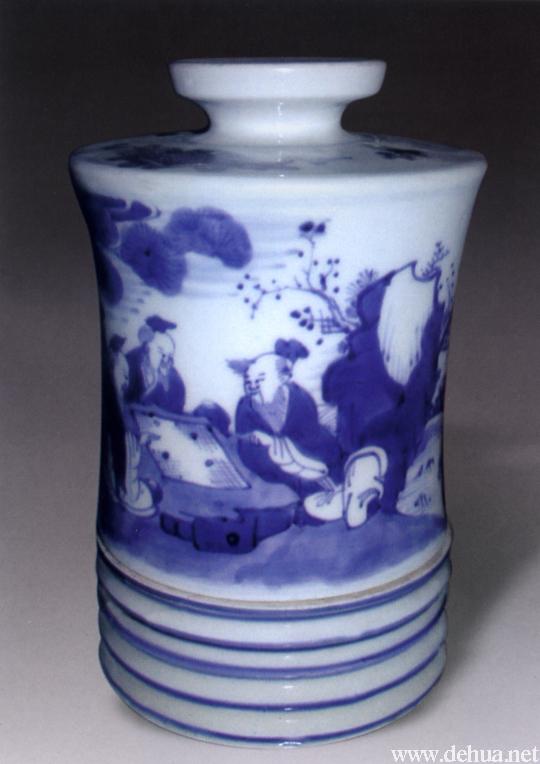▲清早期 青花對弈紋油燈(劉以溪藏) 高19.5厘米,口徑11.5厘米
