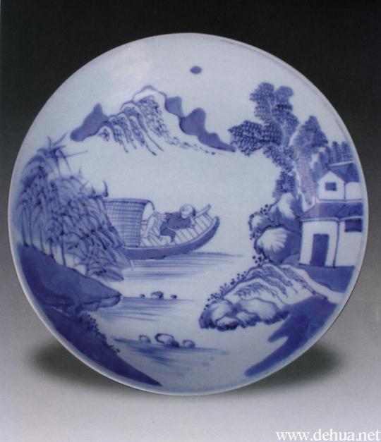 ▲清·康熙 青花山水漁樂紋盤 口徑25.5厘米