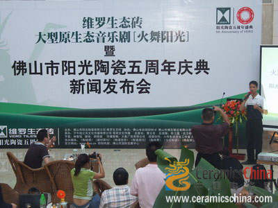 陽光陶瓷公司市場部黃云岳經(jīng)理在發(fā)布會上給媒體記者介紹了公司的整體情況,并預(yù)報(bào)了陽光公司將于9月6日舉行的大型音樂劇《火舞陽光》的具體細(xì)節(jié),引起全體媒體朋友的廣泛關(guān)注。