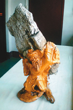 愚公移山:這尊“根抱石”的根藝作品,表現(xiàn)了雕刻藝術(shù)家巧妙地利用根與石的結(jié)構(gòu),加上獨特的構(gòu)思、夸張的手法和細膩的刀法,栩栩如生地再現(xiàn)了“愚公移山”艱苦創(chuàng)業(yè)的精神。體現(xiàn)了雕刻家變廢為寶,化腐朽為神奇的藝術(shù)創(chuàng)造性和天人合一的神韻。寓意深長、令人感嘆,催人上進!