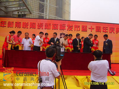 (本網(wǎng)新聞主編 蘇振明 攝影報道)8月14日上午,在一片鑼鼓聲聲、彩旗飄飄、醒獅輕舞的熱鬧氣氛中,新南悅陶瓷制品有限公司隆重舉行了新南悅陶瓷營銷中心展廳開業(yè)大典。新中源集團(tuán)公司總裁霍鐮泉先生、新南悅銷售公司總經(jīng)理霍本潮先生、佛山當(dāng)?shù)卣c文化部門以及新南悅的各地經(jīng)銷商朋友、業(yè)界人士和眾多媒體共同見證了這一神圣而喜慶的時刻。