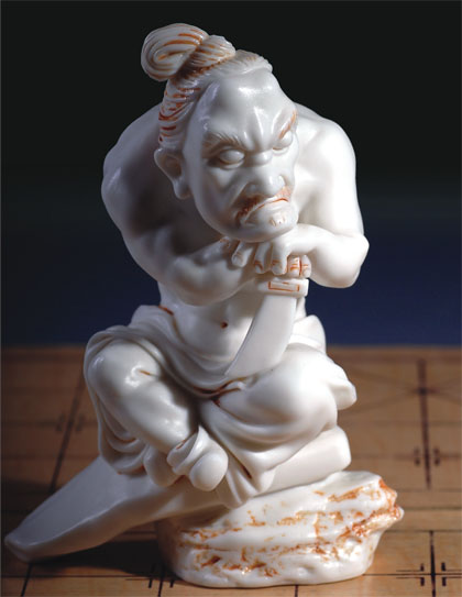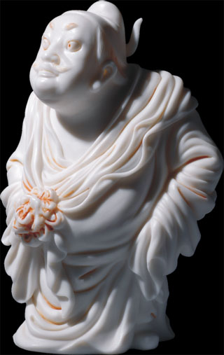 蘇珠莊,蘊(yùn)玉瓷莊第四代傳人,高級(jí)工藝美術(shù)師,曾赴景德鎮(zhèn)陶瓷學(xué)院、清華大學(xué)工藝美術(shù)學(xué)院等高等學(xué)府深造、得國內(nèi)著名雕塑家教授言傳身教。承襲祖?zhèn)魉囷L(fēng),創(chuàng)作題材豐富,神形兼?zhèn),其作品多次獲獎(jiǎng),并多次攜作品到國外展覽,深受好評(píng)。