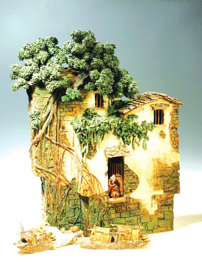 “心存青山綠水,手捏春夏秋冬”,牽陶藝鄉(xiāng)土情,系嶺南山水韻是新美陶公司當(dāng)代青年陶藝家楊慶火昆、區(qū)錠鸞伉儷的陶藝作品寫照。他倆都是石灣人,自小青梅竹馬,有共同的喜愛和志向。楊慶火昆在中學(xué)時期,已顯示出在山水畫方面的天賦,參加工作后又從事瓷片繪畫十多年。進入陶藝創(chuàng)作室之后,他倆常常探索,如何把自己所學(xué)長處發(fā)揮到陶藝創(chuàng)作中去,于是勇于開拓進取的他們以畫入陶,把中國畫融匯于陶塑器物之中,開創(chuàng)了立體山水陶塑之路。