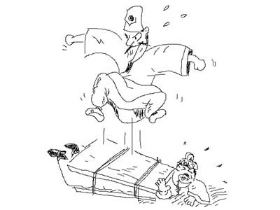有個(gè)駝背信以為真,就請(qǐng)他醫(yī)治。他拿了兩塊木板,不給駝背開(kāi)藥方,也不給他吃藥,把一塊木板放在地上,叫駝背趴在上面,用另一塊木板壓在駝背的身上,然后用繩索綁緊。接著,便自己跳上板去,拼命亂踩一番。駝背連聲呼叫求救,他也不理會(huì),結(jié)果,駝背算是給弄直了,人也“嗚呼哀哉”了。