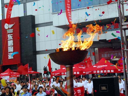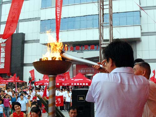 在北京奧運(yùn)進(jìn)入倒計(jì)時之際,此次陶瓷文化節(jié),舉辦方特意從廣東佛山的“南風(fēng)古灶”(一座500多年歷史的古窯,名為南風(fēng)古灶。500多年來一直在燒制陶瓷,至今仍在工作,國內(nèi)罕見)取來百年火種,進(jìn)行陶瓷界的“圣火傳遞”活動。通過“圣火傳遞”活動,以弘揚(yáng)中國陶瓷淵源的歷史文化。