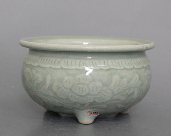 清乾隆 冬青地刻纏枝牡丹三足折沿鼓式爐