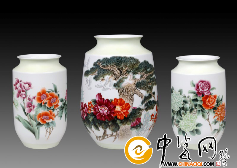 三件套彩繪瓷瓶《人民頌》,寓意為中國共產(chǎn)黨是中國人民和中華民族的先鋒隊,代表了中國最廣大人民的根本利益,其宗旨是全心全意為人民服務。
