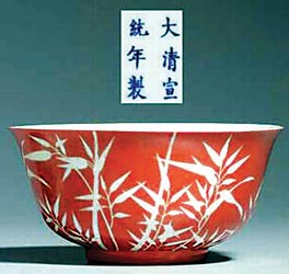 相比“清三代”瓷器,晚清時(shí)期的官窯瓷器種類(lèi)較多、存世量亦較大,可供選擇的余地亦較大,這同時(shí)也讓投資者需要把握精品策略,像清宣統(tǒng)·礬紅留白竹紋碗在拍賣(mài)市場(chǎng)上并不少見(jiàn),但是價(jià)格卻相差不少,像在2005年太平洋的秋拍上,一對(duì)礬紅留白竹紋碗的成交價(jià)也只有7480元。同時(shí),我們也應(yīng)該看到,一些投資者利用這種精品策略獲利頗多,一個(gè)最為典型的例子就是清代光緒賞瓶。