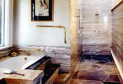 雙面盆的設(shè)計(jì)滿足了現(xiàn)代人更趨于合理的衛(wèi)生要求。古樸典雅的造型與裝飾,可令人身心俱得到完全的松弛。追求放蕩不羈的個(gè)性解放,找回屬于自我的生活空間,看,開(kāi)放式浴室與自然已渾然一體。追求自然的表現(xiàn)手法真可謂千奇百怪:人家楞是把阿拉伯的山石放在了自己的浴室里。您會(huì)怎么看呢?