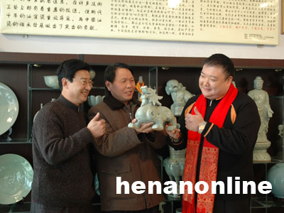全國(guó)人大代表河南省文聯(lián)副主席河南歌舞學(xué)院副院長(zhǎng)范軍、河南歌舞團(tuán)團(tuán)長(zhǎng)于根藝到亨通汝瓷參觀