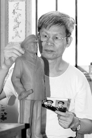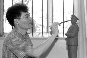為此,劉炳曾到舊貨市場“淘”有關(guān)十大元帥的畫冊,還專門跑到一家音像店買了一張反映十大元帥的新版電影光碟。但是,這張光碟主要反映元帥們的早期形象,這與他們此次創(chuàng)作所選的十大元帥受勛時的面貌有很大的不同。憑著有限的幾張照片,他進行著艱難的創(chuàng)作。熟悉劉炳的人都知道,他的作品以刻畫細膩著稱。如果一件再好的作品他感覺有一點瑕疵,他都會較真起來,輕者重改,重則打爛重做。因此,他每年都要打爛許多自己不滿意的作品。這次創(chuàng)作也不例外。前段時間,他感覺“聶帥”面部特征不突出,便毫不猶豫地精心制作了另一個頭像,還專門做了一個“聶帥”頭像的石膏模。他說,塑像最關(guān)鍵的部分就是對面部的塑造,萬一這次修改我又不如意,我有可能打爛第二個頭像,然后用模子重新做一個新的進行修改創(chuàng)作。