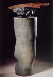 赫胥以"永恒"的三角器立足于美國(guó)陶藝界,并在世界陶藝家倍受關(guān)注。他的三角解器系列在每個(gè)不同時(shí)期有不同的變化和主題。《祭杯系列》、《庫(kù)伯梅第系列》、《邊圍系列》、《圓形系列》、《祭血系列》、《錐形系列》、《V形系列》、《太空容器系列》、《武器系列》等等,從他的作品中我們可以感到一個(gè)看似簡(jiǎn)單的三角器,竟能變換出如此眾多的藝術(shù)形象。而陶藝的材質(zhì)語(yǔ)言和燒成語(yǔ)言(樂燒工藝),竟也如此豐富而魅力無(wú)窮。