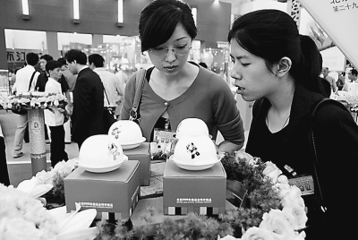 9月20日,奧運(yùn)特許陶瓷產(chǎn)品福娃燭臺(tái)首次在第十屆唐山陶瓷博覽會(huì)上亮相。圖為造型新穎的福娃燭臺(tái)吸引了許多觀眾。