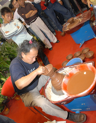 藝術(shù)家現(xiàn)場(chǎng)表演陶藝制作