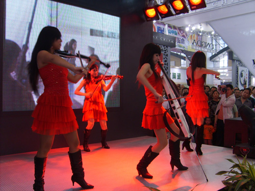 惠達(dá)展區(qū)的四個電音美女成為展館的一道亮麗的風(fēng)景線