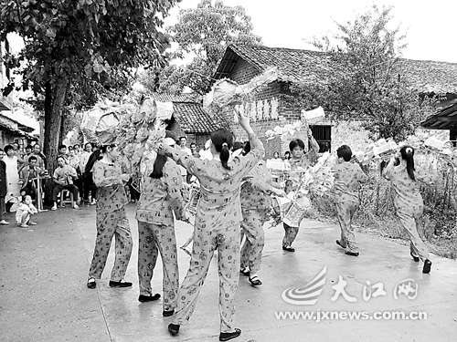 “十一”期間,上高縣充分發(fā)揮具有本土文化韻味的特色文化優(yōu)勢(shì),進(jìn)村入企,與群眾共度國(guó)慶佳節(jié),歡樂(lè)遍及全縣城鄉(xiāng)的每一個(gè)角落。圖為該縣鎮(zhèn)渡鄉(xiāng)花燈隊(duì)在苑新村為村民表演《鬧花燈》。楊德峰 本報(bào)記者羅德斌攝