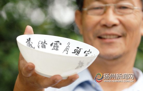 國慶期間,揚(yáng)州個(gè)園舉行的揚(yáng)州傳統(tǒng)工藝展示會(huì)上,揚(yáng)州工藝美術(shù)大師、瓷刻大師楊達(dá)生制作的一只刻有鄭板橋10個(gè)書法字“精神健寂寞 頭角露潛藏”的薄胎瓷刻碗標(biāo)出了40萬元的天價(jià)。