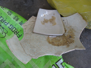 ▲村民挖出的古瓷片。