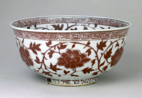此碗紋飾活潑明快,紅色較艷,無論造型或紋飾構(gòu)圖都具有鮮明的時(shí)代風(fēng)格,為元代釉里紅瓷器的代表作品。